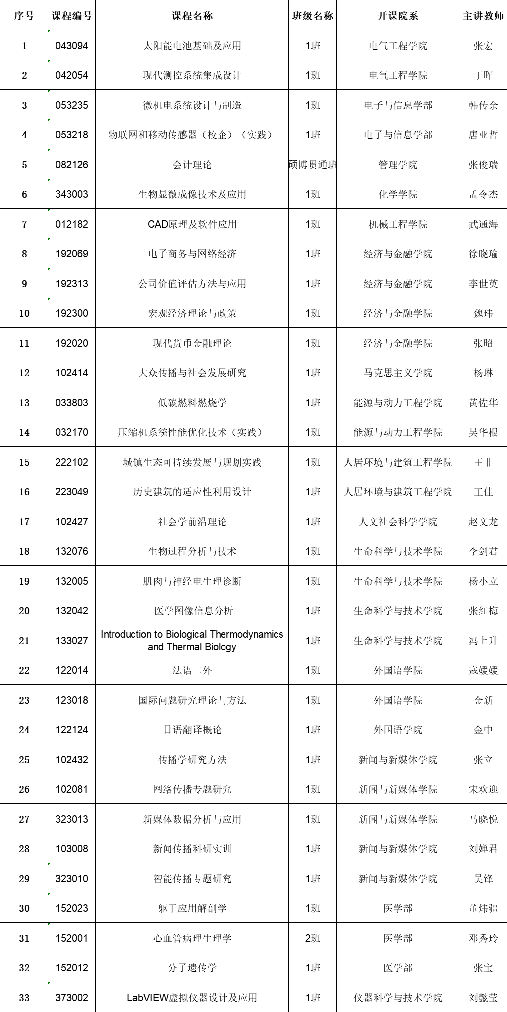 根据前期确认班级及调改课结果,以下课程由于选课人数不足停开。对应选班结果已经清除,请在2024年9月22日18:00前调整个人培养计划,改选其他课程以满足培养方案要求。