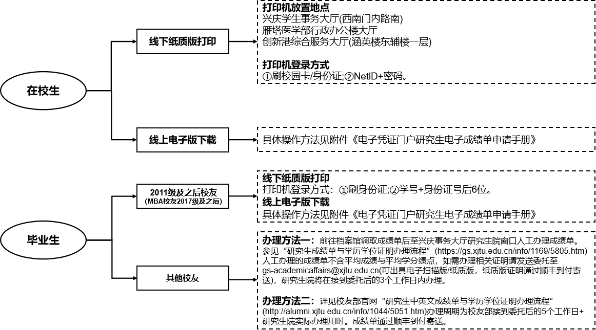 (二)中英文过程成绩单(线下:自助打印机打印;线上:师生可信电子凭证综合服务平台下载https://dzpz.xjtu.edu.cn/)